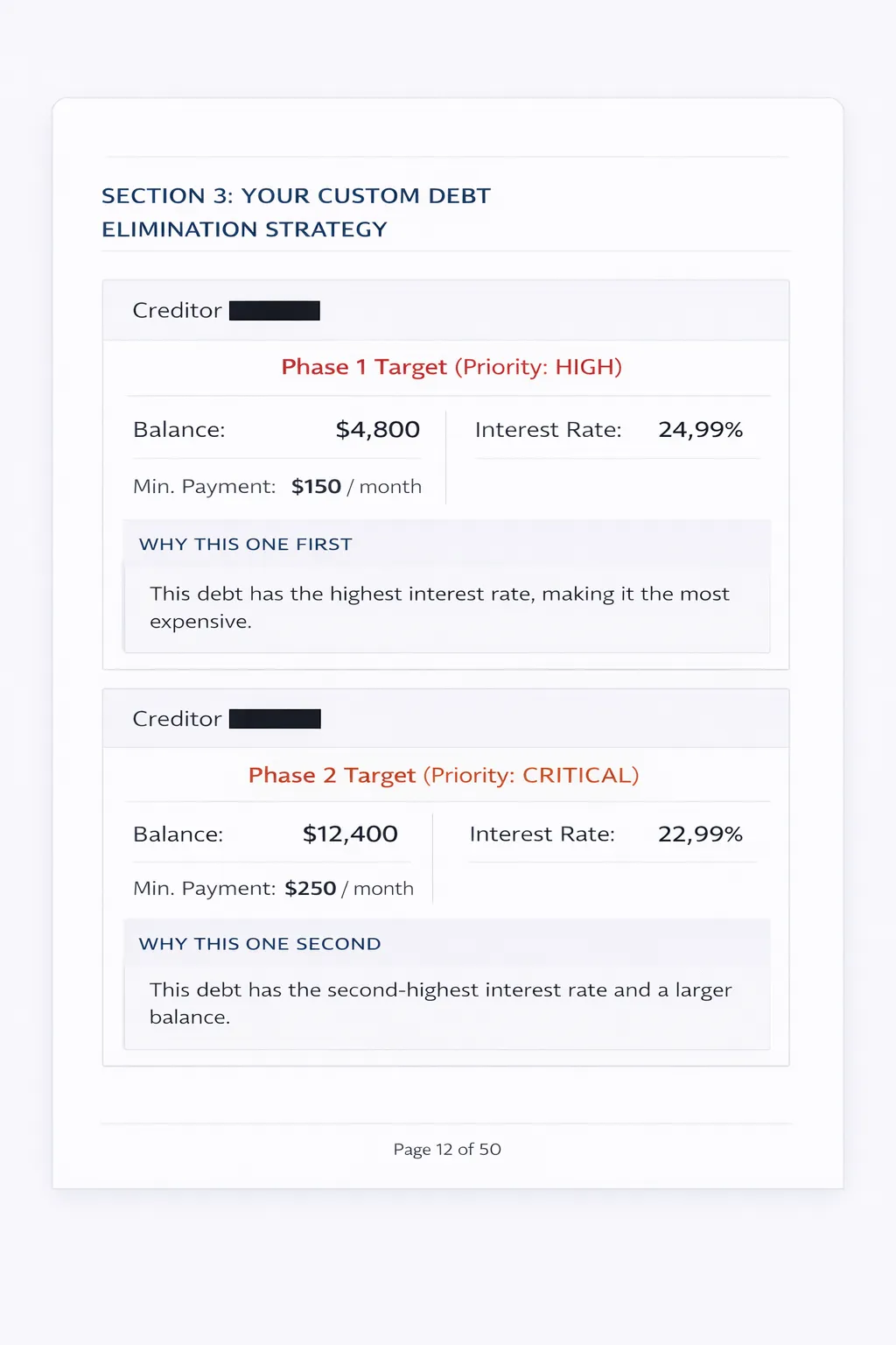 Debt-Free Custom Plan - 100% personalized and "done-for you" – $2,000